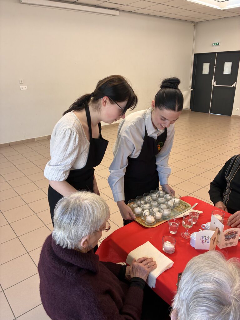 Tout au long de leur parcours, les élèves sont régulièrement mis en situation professionnelle. À la mi-mars, les élèves de deuxième année ont ainsi participé au service du repas des aînés, organisé par une association locale. Un moment concret et formateur, au cœur des réalités du métier.